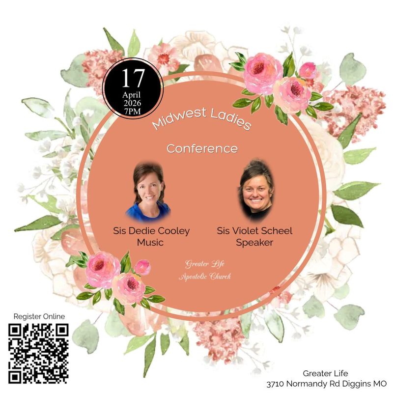 Midwest Ladies Conference: A time of spiritual renewal and fellowship! Sis Cooley and Sis Scheel will again join us this year. We anticipate a great time together! There will be a catered banquet following service. Registration is $30 for Adults. Children 12 and under are free.